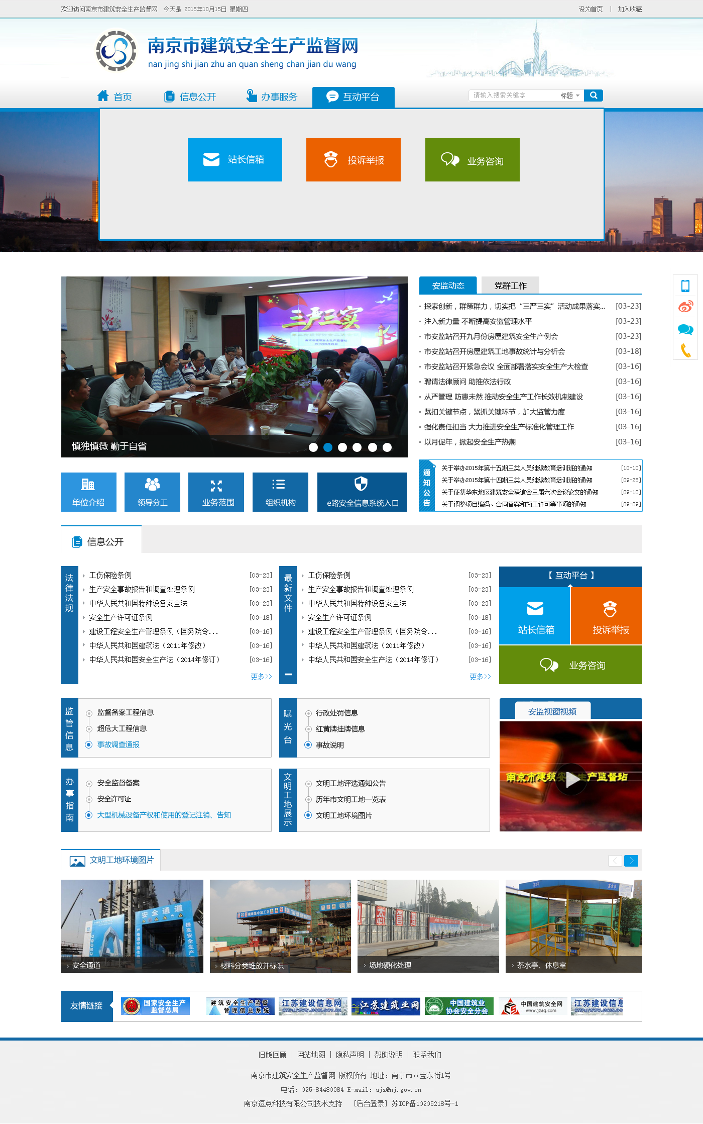 南京市建筑安全生產(chǎn)監(jiān)督站于1992年9月成立,是承擔(dān)全市建筑安全生產(chǎn)監(jiān)督與管理的事業(yè)單位。隸屬于南京市住房和城鄉(xiāng)建設(shè)委員會。負(fù)責(zé)主城區(qū)范圍內(nèi)市級(含)以上立項(xiàng)房屋建筑工程安全生產(chǎn)和文明施工的日常監(jiān)督管理。具體負(fù)責(zé)范圍內(nèi)施工現(xiàn)場監(jiān)督檢查、標(biāo)準(zhǔn)化工作管理推進(jìn)、市級文明工地評比和省級(含)以上文明工地推薦,辦理安全監(jiān)督備案、安全生產(chǎn)許可證初審、起重機(jī)械設(shè)備登記備案等事項(xiàng),參與生產(chǎn)安全事故調(diào)查,對各區(qū)監(jiān)督機(jī)構(gòu)進(jìn)行業(yè)務(wù)指導(dǎo)。
